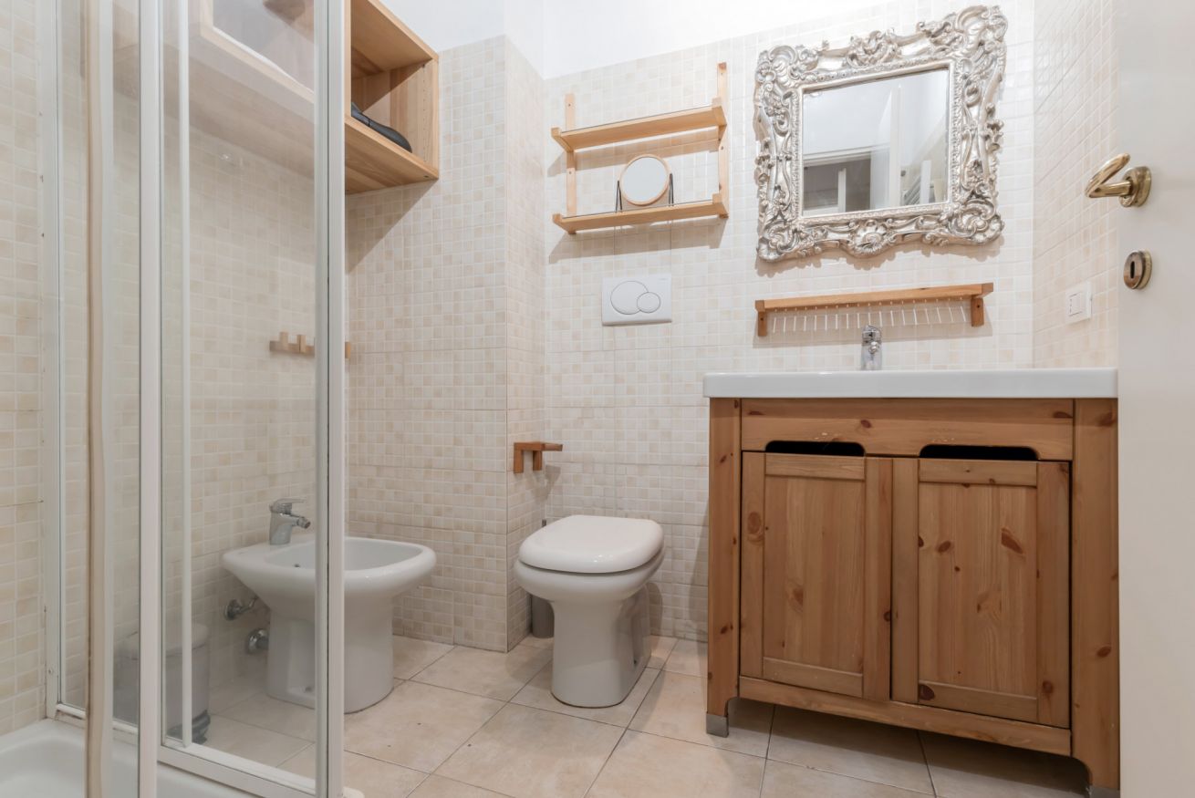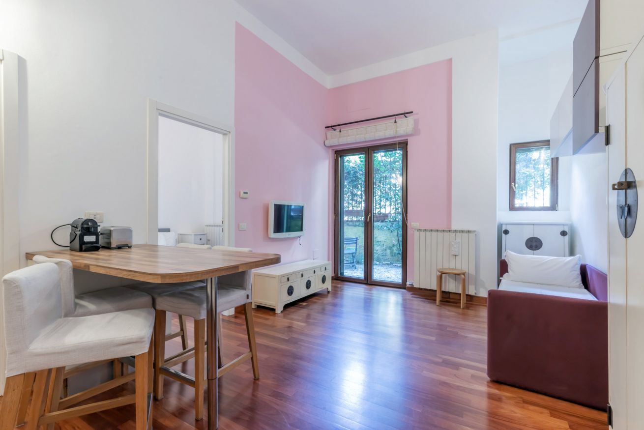 L'appartamento è composto da una camera da letto con ampio armadio, zona giorno con divano letto, angolo cottura con lavastoviglie e frigorifero, accessoriato di tutto il necessario per cucinare e mangiare (tra cui anche macchinetta caffè, tostapane, bollitore e microonde), un disimpegno attrezzato con lavatrice e un bagno completo di lavabo, bidet, wc e comoda cabina doccia. Completa la struttura un patio esterno privato arredato che garantisce relax, tranquillità e privacy. Troverete asciugamani e lenzuola a disposizione e WiFi gratuito in tutta la casa. All'esterno della palazzina, è presente infine il locale immondezzaio differenziato dove poter comodamente gettare la spazzatura.