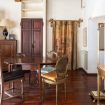 Un salone monumentale con soffitto in legno a cassettoni, arredi d’epoca e tanta luce naturale. Qui ogni angolo racconta una storia.