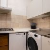 Cucina attrezzata con tutto quello che serve: forno, fornelli a gas, microonde, lavastoviglie, bollitore, tostapane, macchina del caffè con capsule, piatti, posate e utensili base per cucinare.