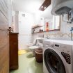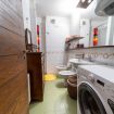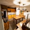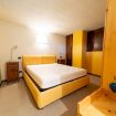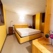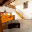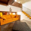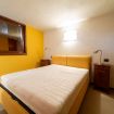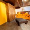 Il soggiorno è dotato di un comodo divano letto arancione, ideale per rilassarsi dopo una giornata sulla neve o in cammino tra i sentieri. Salendo al piano superiore si accede alla camera matrimoniale, luminosa e colorata, con arredi vintage e un letto comodo per sognare in quota. Il bagno, funzionale e colorato, è completo di doccia, asciugacapelli, bidet e lavatrice, perfetto per soggiorni lunghi.
