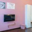 - La zona notte è un grande open space con vista sulle cupole del Duomo, fornito da letto matrimoniale, 2 comode poltrone trasformabili in letti singoli (perfette per chi viaggia con bambini), ampio armadio e TV schermo piatto.