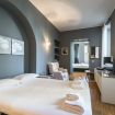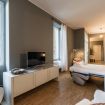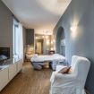 Il nostro open space offre un ambiente raffinato e accogliente, arredato con gusto e attenzione ai dettagli. La zona giorno è un vero e proprio angolo di relax, con un comodo divano letto e una poltrona perfetta per leggere un buon libro o guardare la Smart TV con connessione Wi-Fi gratuita. L'ampio spazio è illuminato da grandi finestre che offrono una splendida vista sulla città.