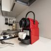 Angolo cottura attrezzato con stoviglie, microonde e macchina del caffè