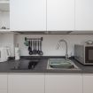 Questo monolocale dal design minimalista è studiato per offrire un soggiorno di altissimo livello: