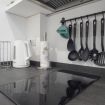- Cucina attrezzata: Induzione 2 fuochi, lavastoviglie, forno, microonde, bollitore, moka e set completo di utensili da cucina