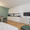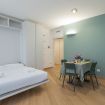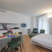 Questo monolocale dal design minimalista è studiato per offrire un soggiorno di altissimo livello: