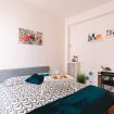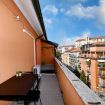 La camera da letto si affaccia su un ampio BALCONE, dotato di tavolo e sedie, in cui potersi godere una bella colazione o rilassarsi con un aperitivo all’ultimo piano del palazzo.