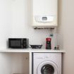 Con i suoi 70mq, ospita fino a 4 persone grazie a una camera matrimoniale luminosa e un comodo divano letto in soggiorno. La cucina separata è completamente attrezzata: forno, microonde, lavastoviglie, macchina da caffè, tostapane, bollitore e tutto il necessario per cucinare come a casa. Il bagno è moderno, dotato di doccia, asciugacapelli, set cortesia, biancheria e bidet. A disposizione anche lavatrice, ferro da stiro e stendibiancheria.